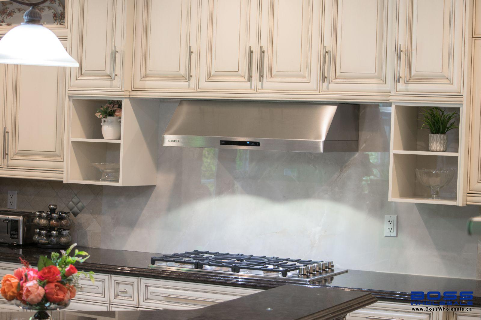 This 36-inch convertible wall-mount range hood not only provides excellent performance, but looks great as well. It features a powerful 390 CFM motor (600 CFM capable) and has four fan-speed settings and Bluetooth On/Off Control. The dishwasher safe metal filters are a breeze to clean up. Its sleek design brings more elegance to your kitchen.